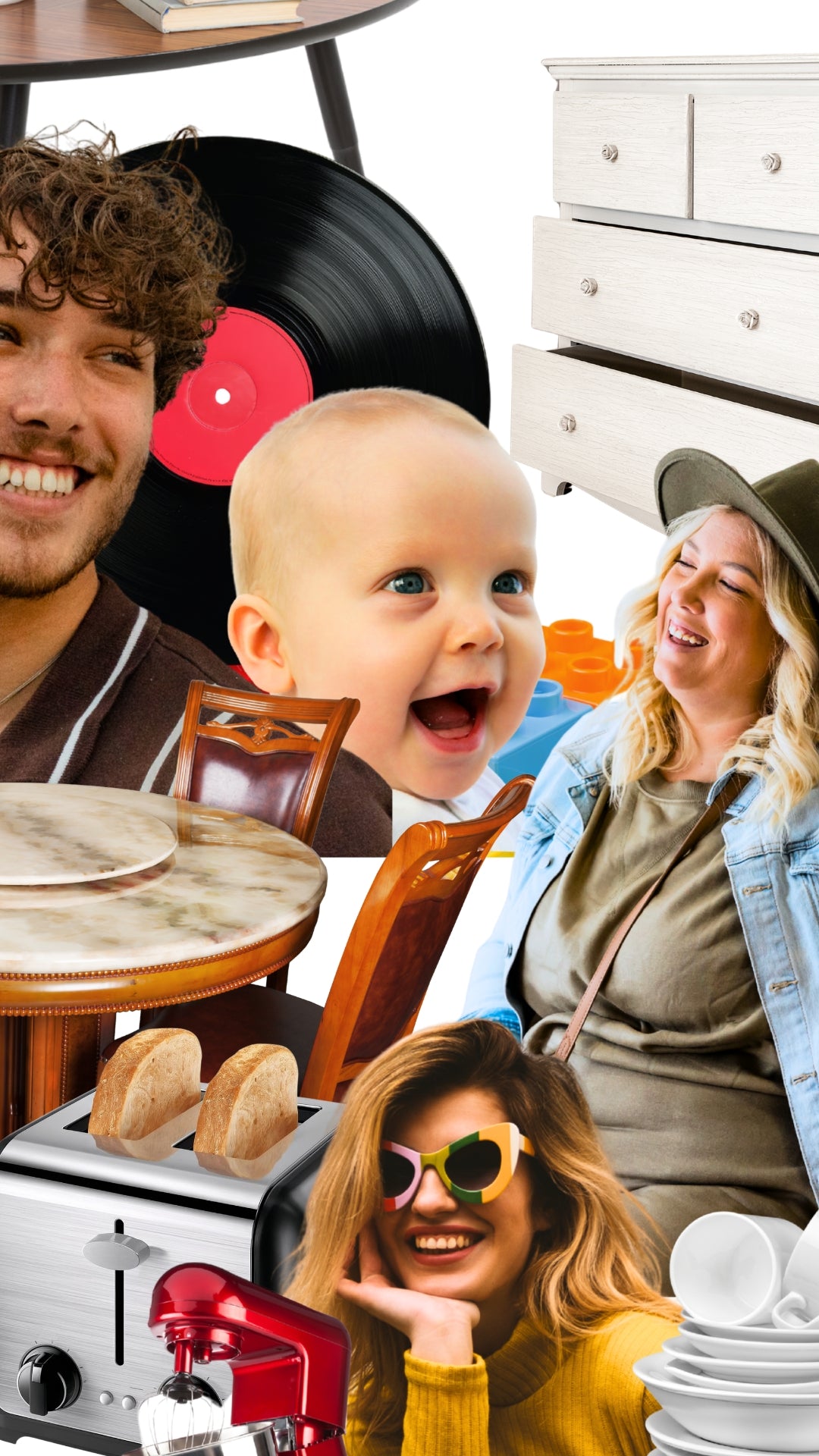 Objets de tous genres, jouets, vaisselles et décorations, électroniques, etc. Nous refusons les objets brisés, incomplets, concernés par rappel, expiré ou provenant d'environnement fumeur.